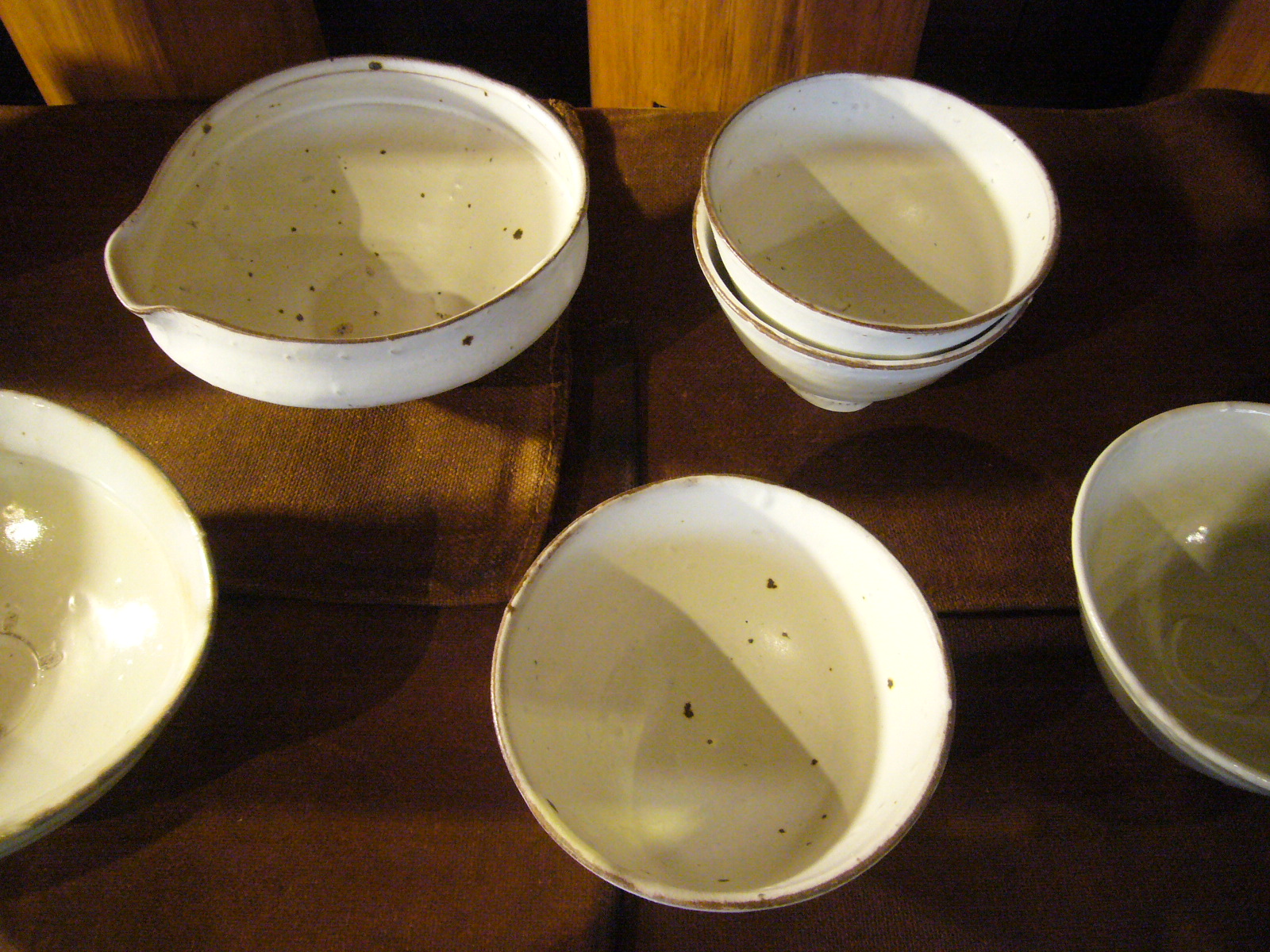 荒賀さんの 魅力ある 無垢な粉引の器、黒釉や井戸茶碗等々は 又、そこに盛る素材を引き立ててくれるでしょう。
