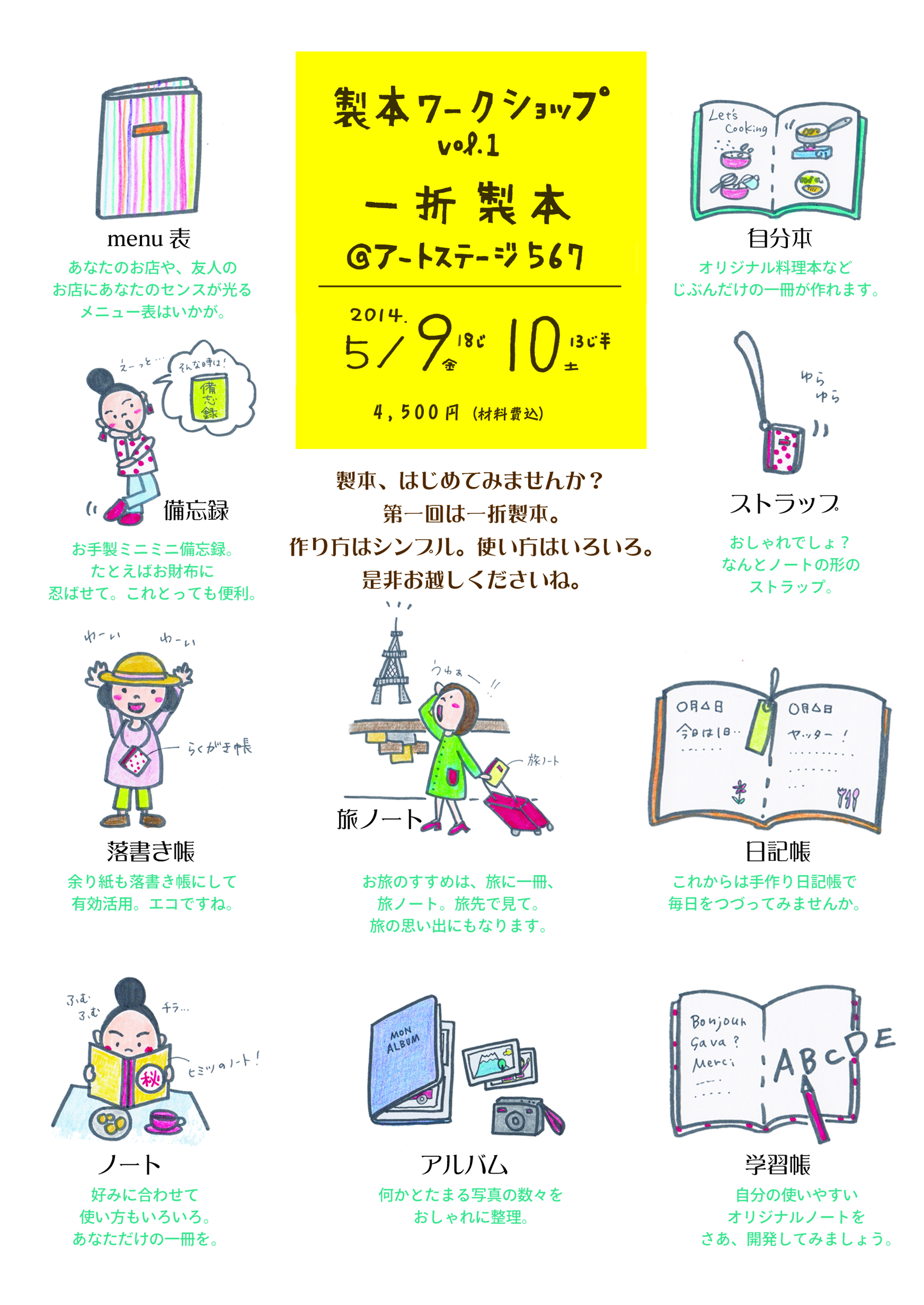 第一回は一折製本。 作り方はシンプル。使い方はいろいろ。