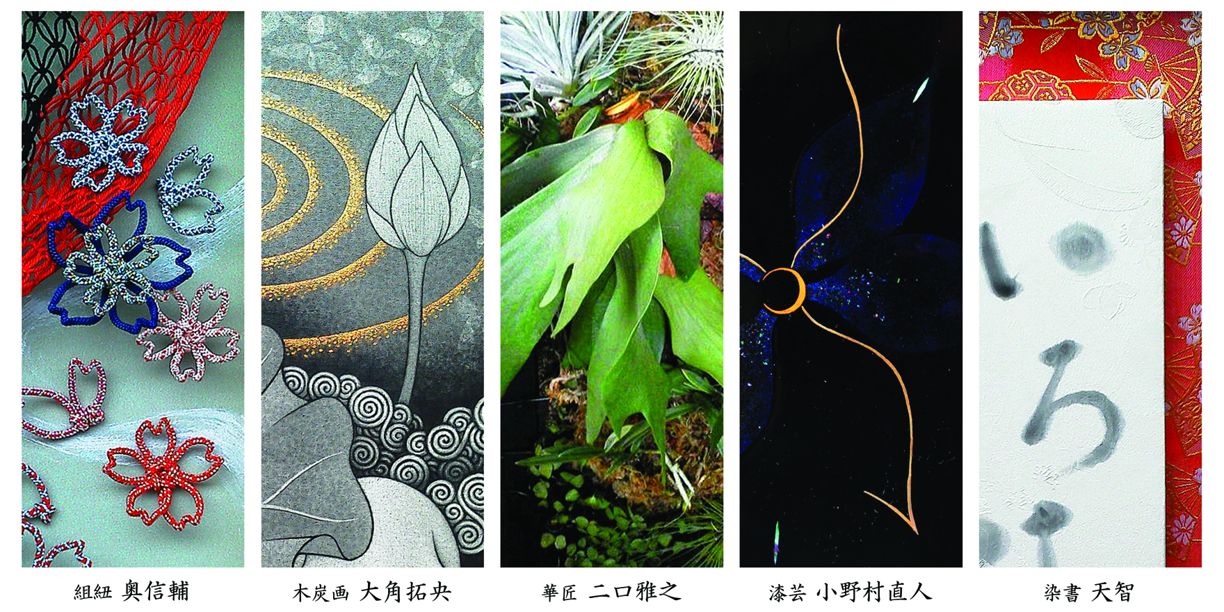 絵画と書、組紐や漆、草花、作家たちが丹精込めた作品を中心に、