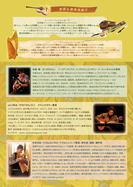 アイリッシュハープ、イーリアンパイプス、クラシックギターで奏でるアイルランドの調べ
