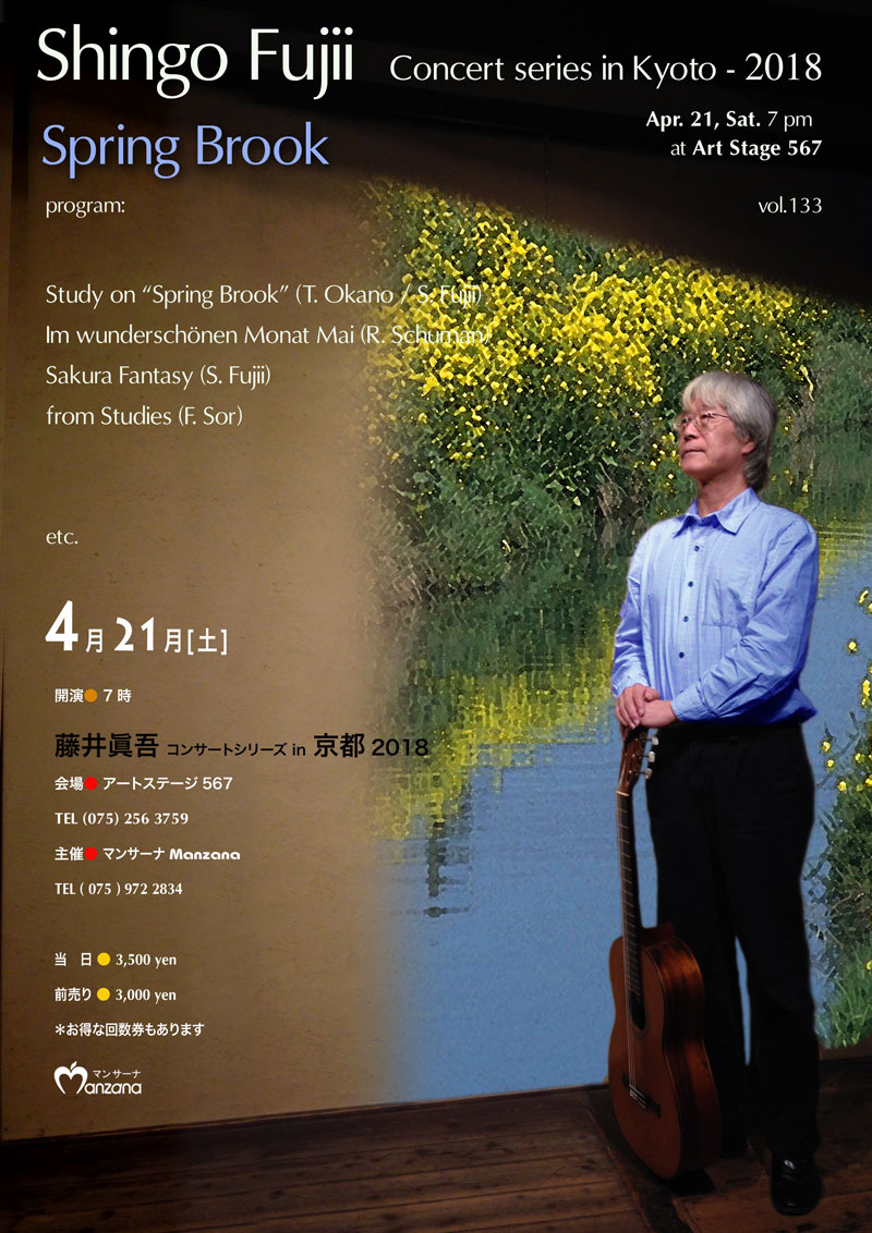 今週の土曜日4月21日は、藤井眞吾コンサートシリーズvol.133「春の小川 Spring Brook」開催です。